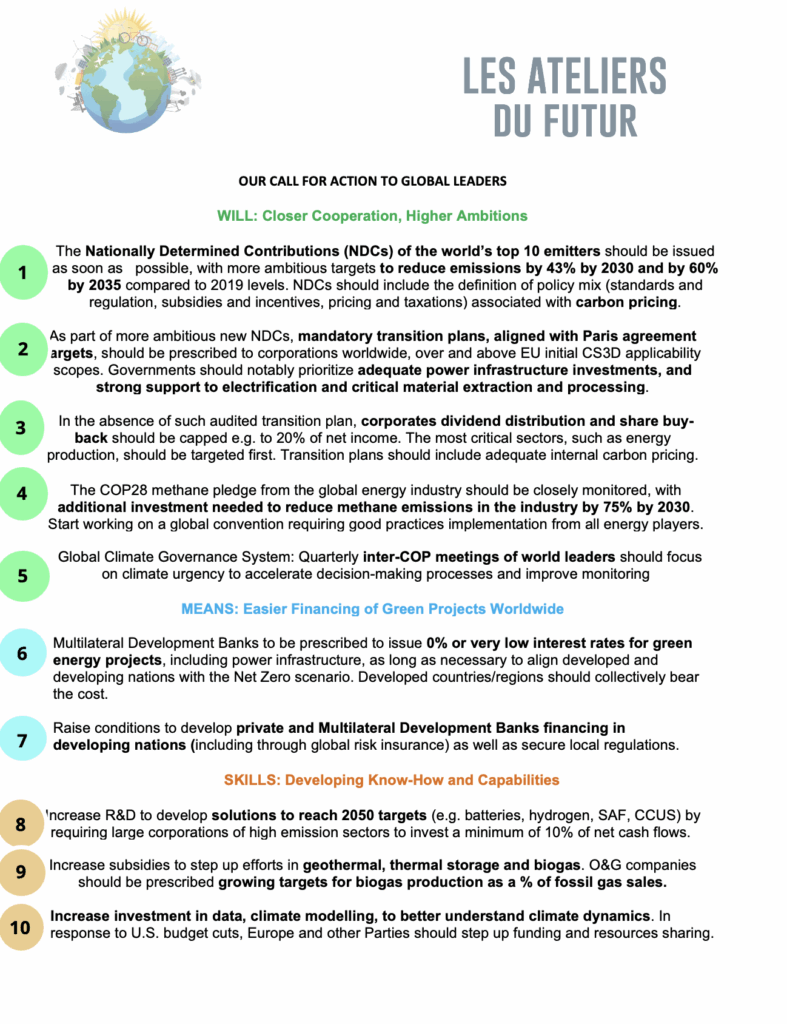 Dix ans après Paris, la COP30 acte la fin du cycle de négociation pour basculer vers la mise en œuvre. Comment se situent les résolutions de cette COP par rapport à l’appel à l’action que nous avons adressé aux leaders mondiaux?